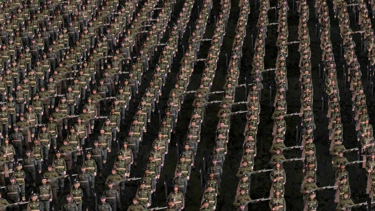Parade Ground is a digital artwork referencing traditional regimental photos on a very large scale. The piece attempts to bring home to the viewer both the terrifying scale of the region’s contribution to the war and the very human and individual nature of this contribution.
