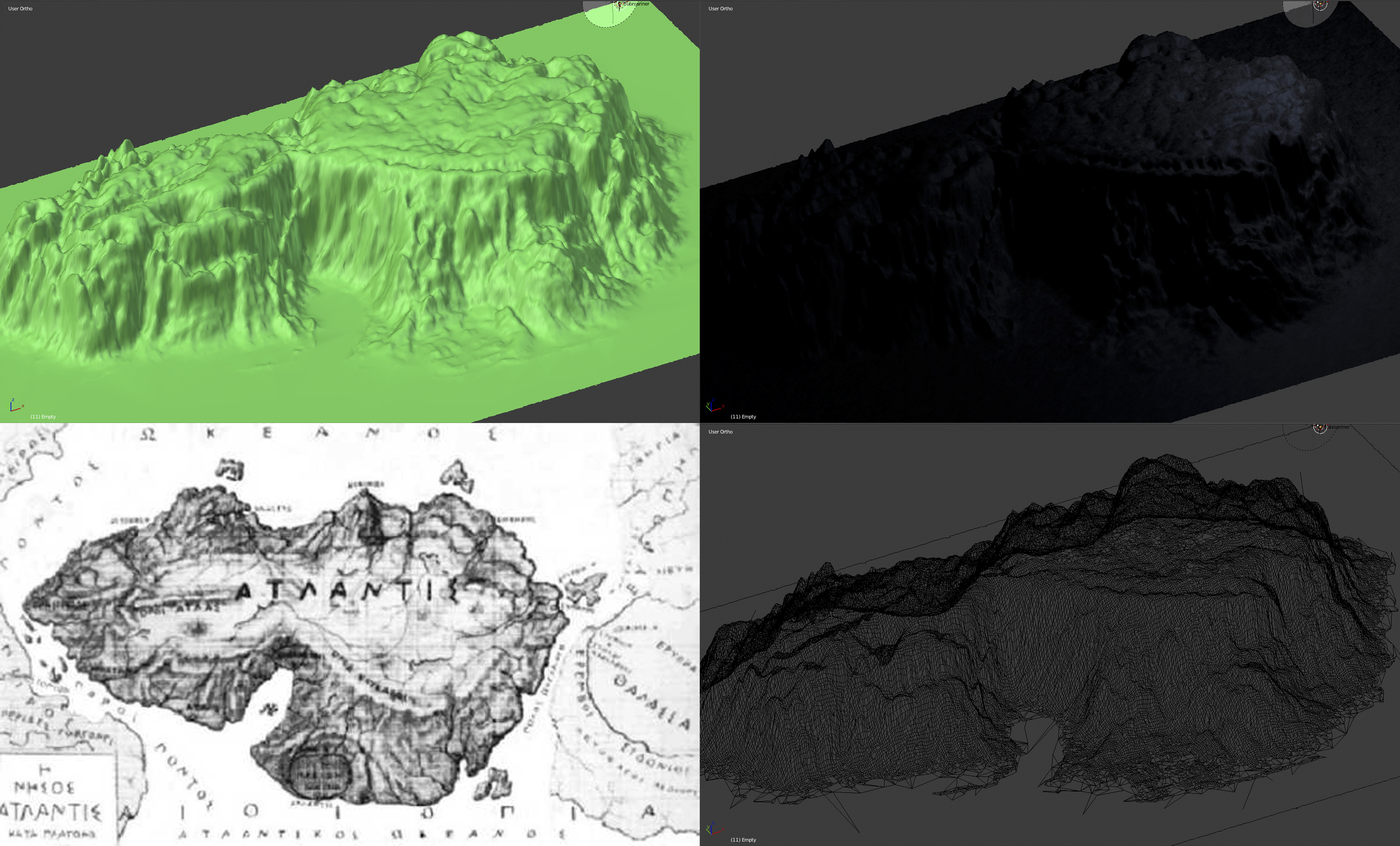 Working up the CG environment from Kampanakis 19th Century Map of Atlantis.