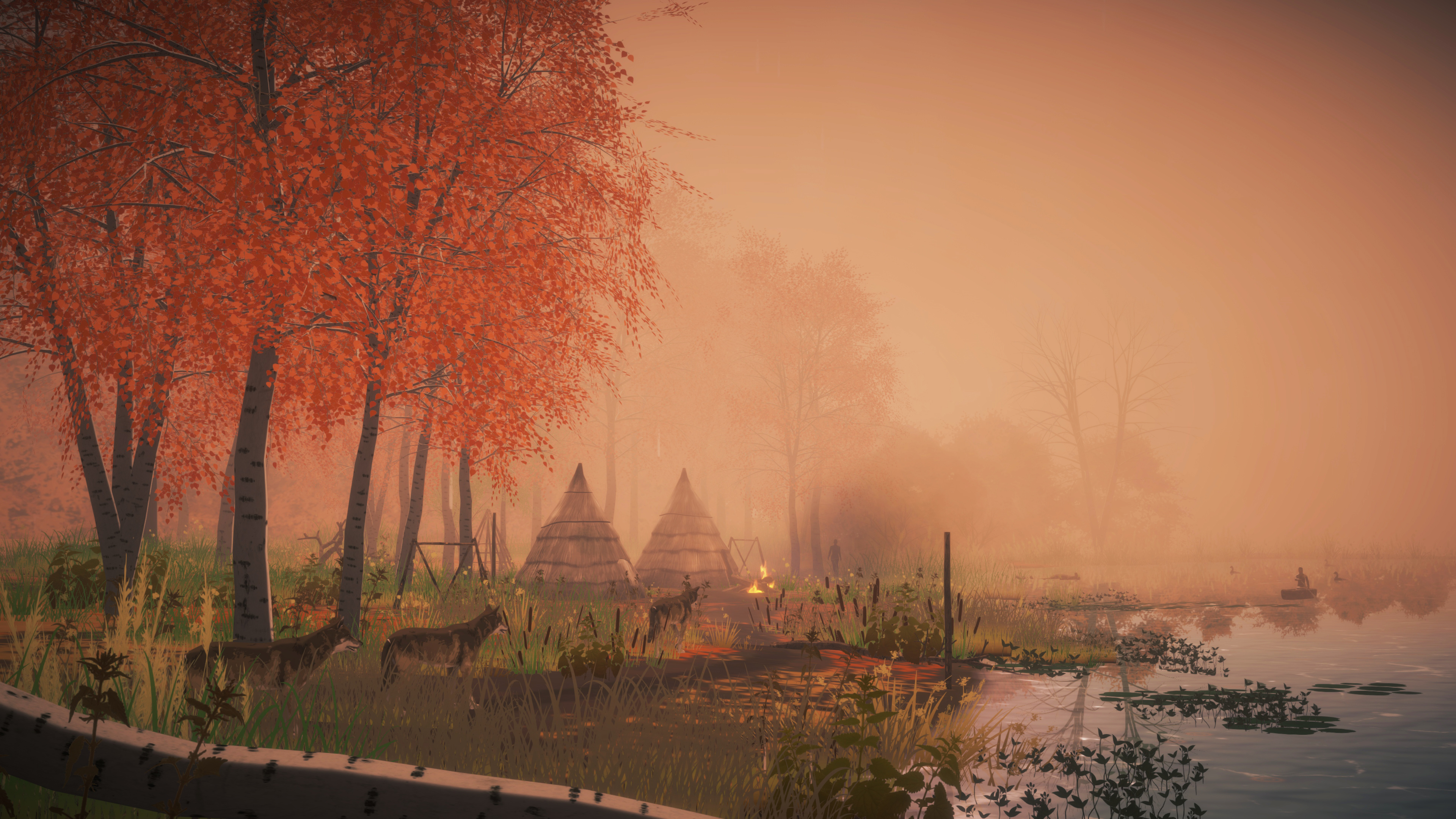 Star Carr: After the Ice is an interactive mural created for a major exhibition at The Yorkshire Museum, York, UK. It was created to give viewers a glimpse into the lives of the people of Star Carr as they hunt, travel, worship, relax and play. The piece runs through day and night and seasonal cycles on an infinitely variable loop, with different weather, light conditions and activities occurring every day. A motion sensor enables the piece to respond to movement in front of it, with animals and birds startling and passing humans greeting the viewer. Some of these are rarer than others: deer are often seen moving in the woods, whereas wolves and bears may be seen only occasionally after many hours and multiple cycles.